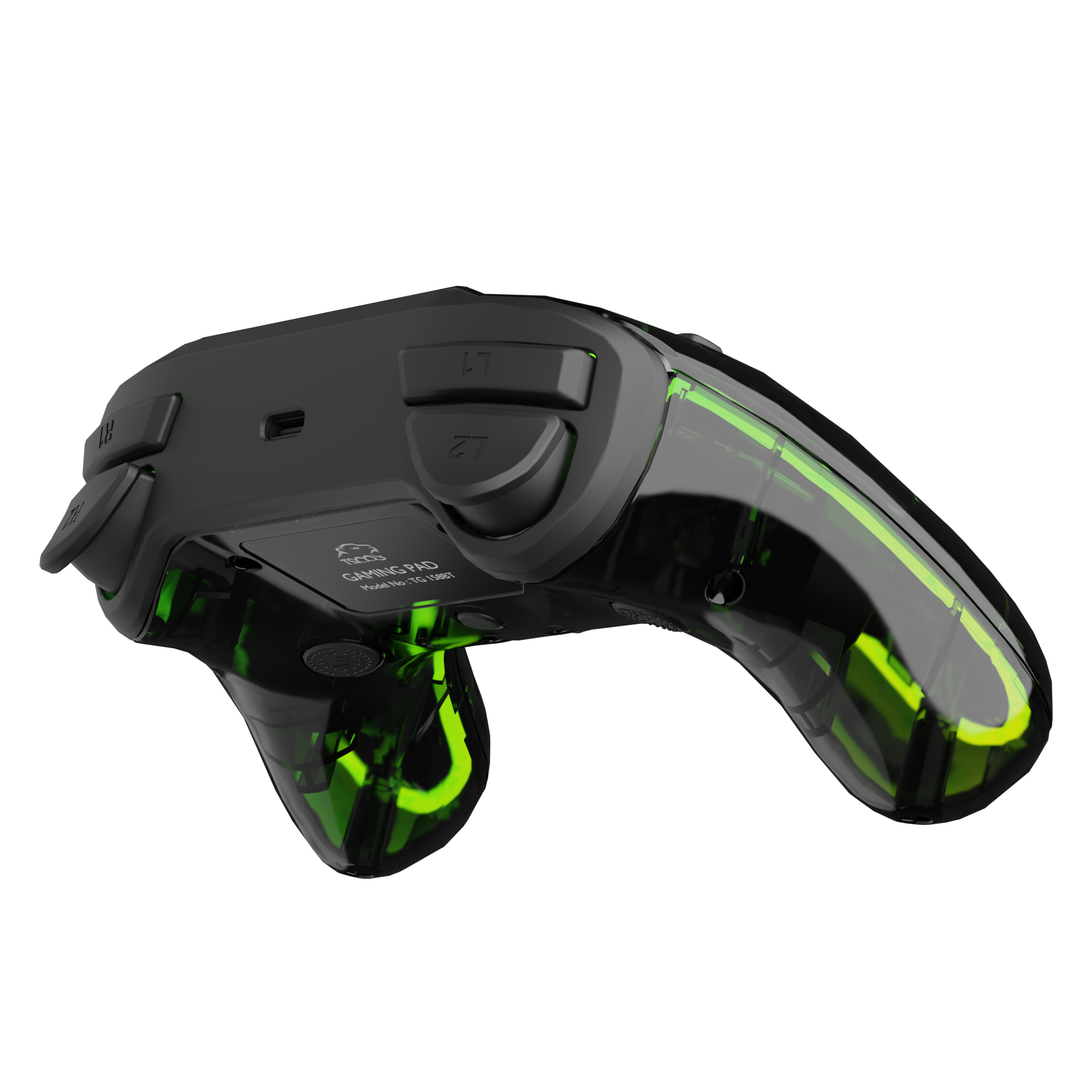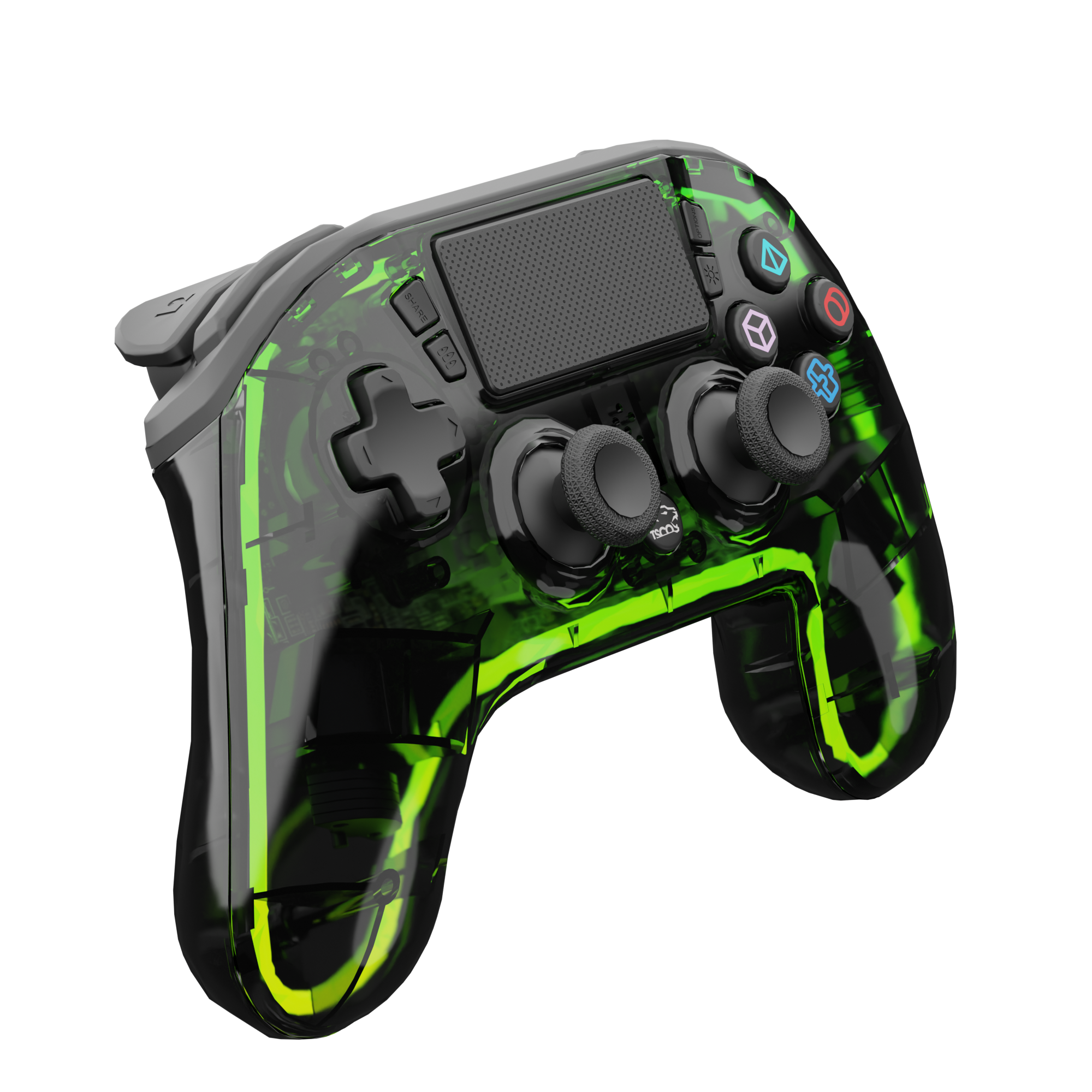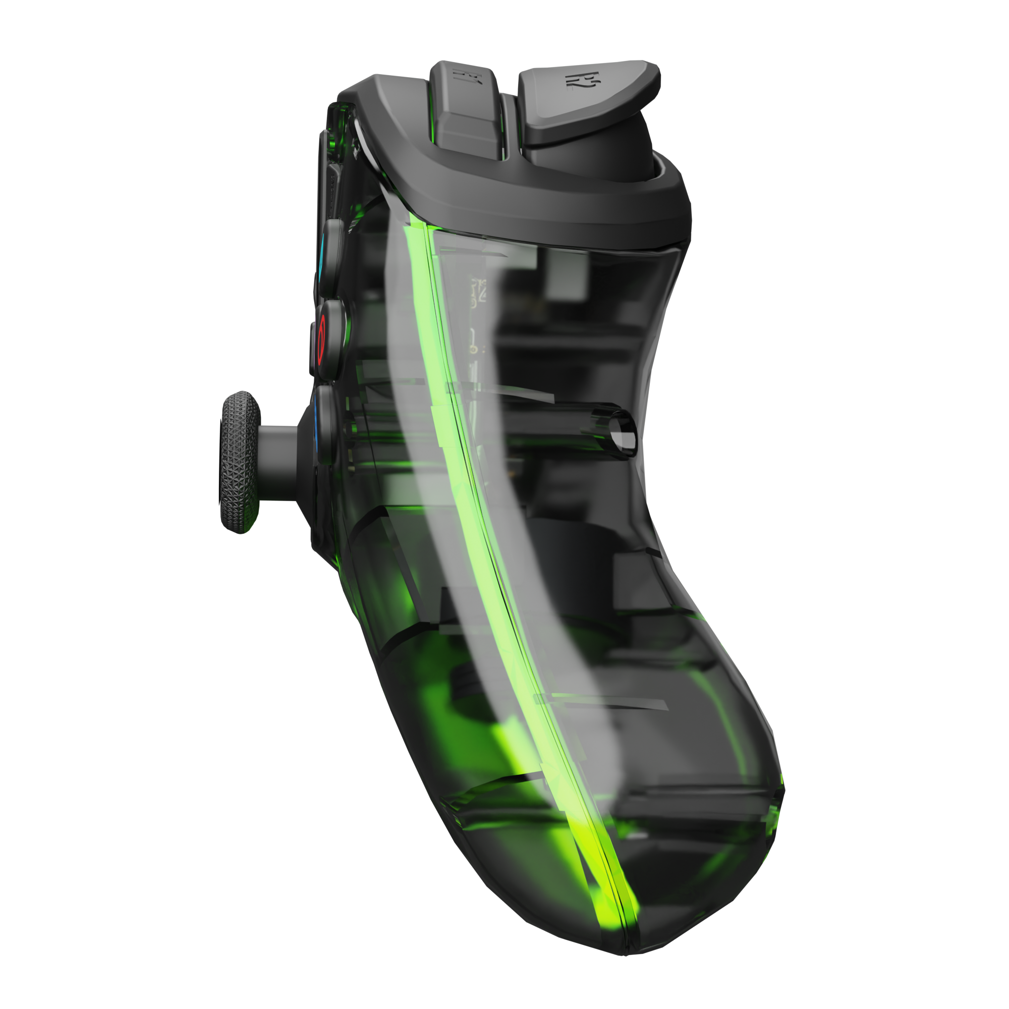 این گیم پد با طراحی منحصر به فرد، بدنه ای شفاف و نورپردازی RGB به بازار عرضه خواهد شد که علاوه بر اتصال بی سیم و ظرفیت باتری 400 میلی آمپر ساعتی، امکان سازگاری با پلتفرم های 4PS ,PC و اندرویدی را دارد.
