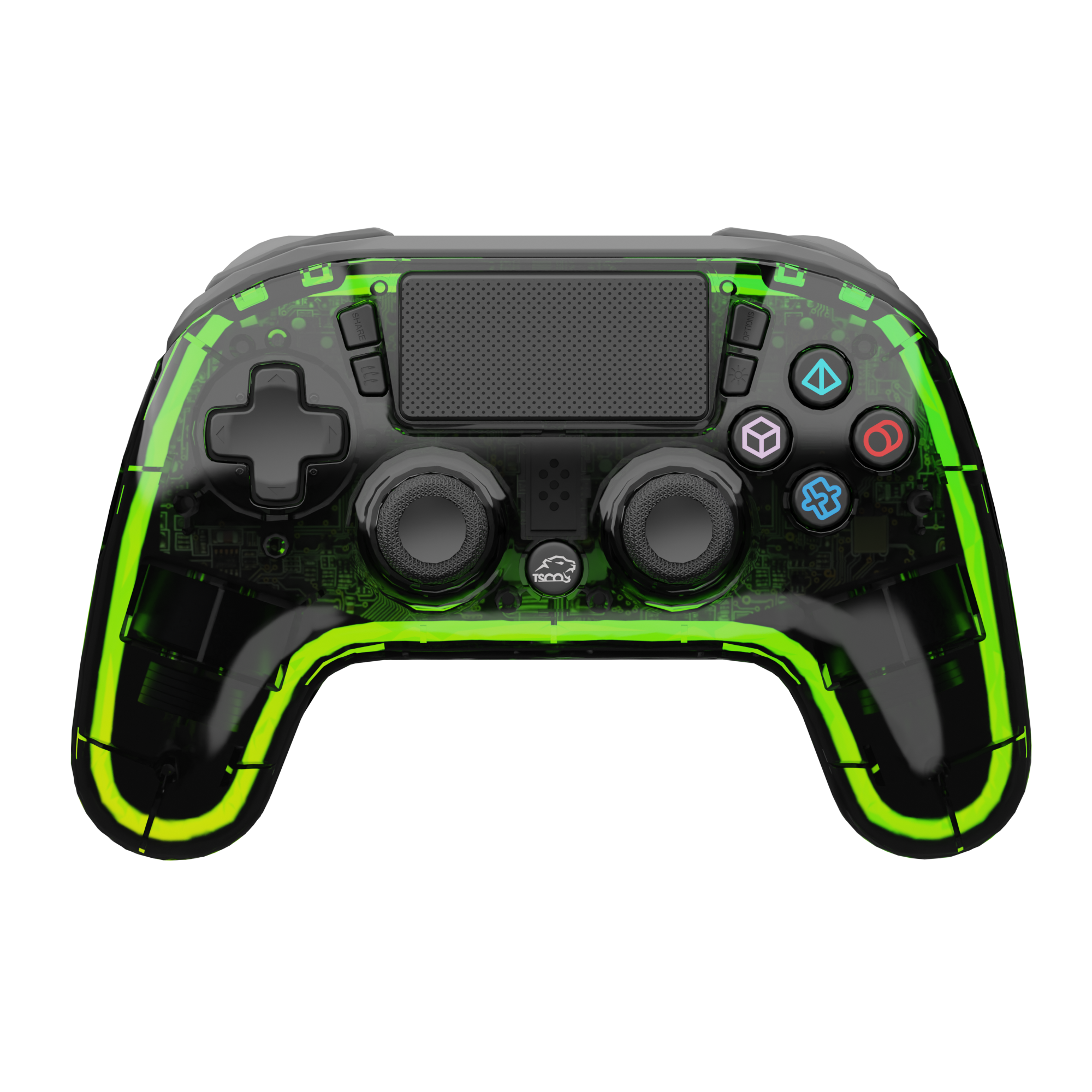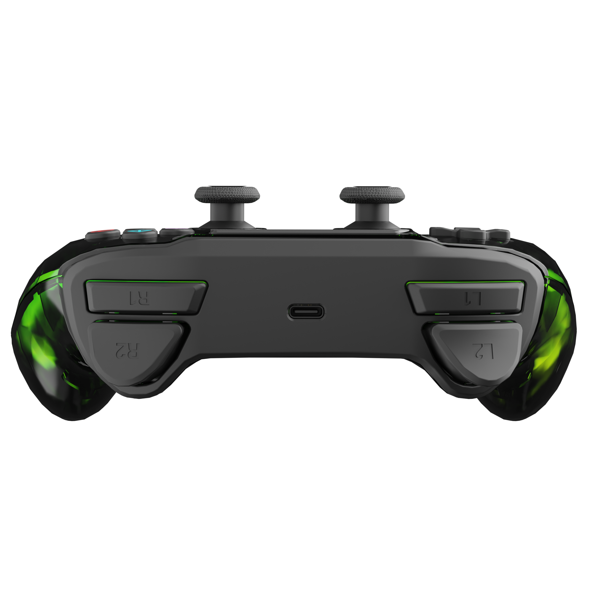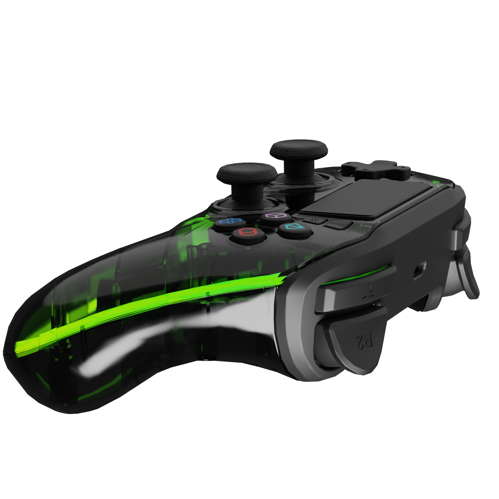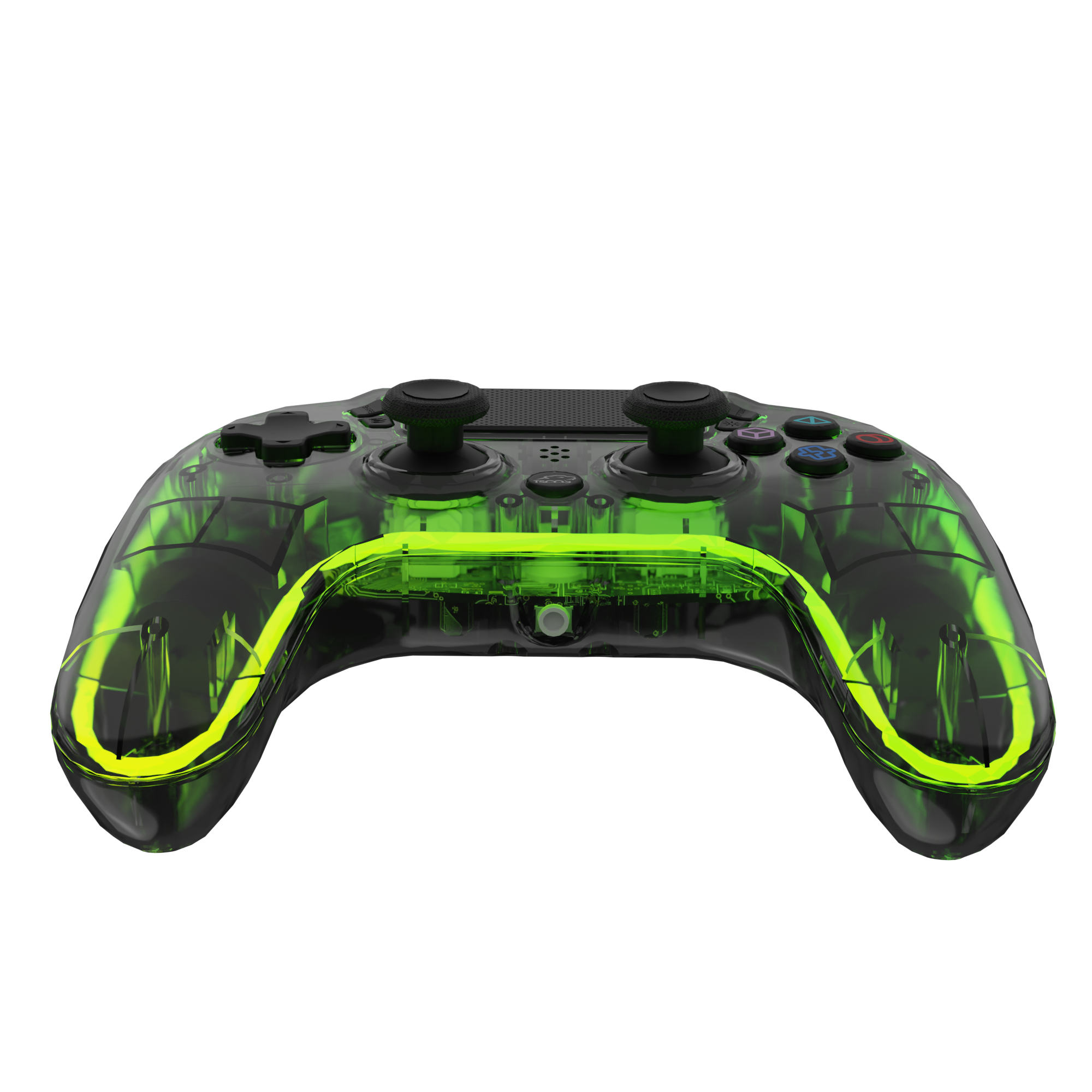 این گیم پد با طراحی منحصر به فرد، بدنه ای شفاف و نورپردازی RGB به بازار عرضه خواهد شد که علاوه بر اتصال بی سیم و ظرفیت باتری 400 میلی آمپر ساعتی، امکان سازگاری با پلتفرم های 4PS ,PC و اندرویدی را دارد.