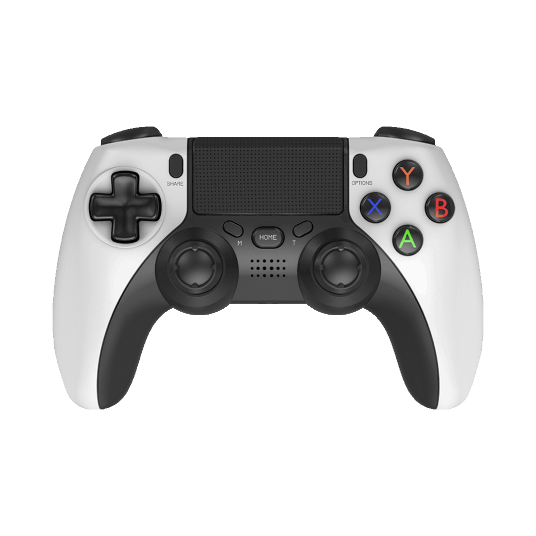 TG 159W با بدنه سفید و براق (پلاستیک تزریقی ABS) و طراحی شبیه دسته PS5، نهتنها چشمنوازه، بلکه تو دستت مثل یه رویا میشینه. با ابعاد 155x102x62 میلیمتر و وزن فقط 240 گرم، این گیمپد از دسته PS4 (DualShock 4) خوشدستتره و ساعتها بازی کردن باهاش خستت نمیکنه. نورهای رنگارنگ (LED) روی دکمههای اصلی ( مثلث، دایره، مربع، ضربدر) حس و حال ستآپ گیمینگت رو به یه تورنمنت جهانی میبره. D-pad قابل تعویض هم بهت اجازه میده دسته رو به سبک خودت شخصیسازی کنی، درست مثل گیمپدهای حرفهایی