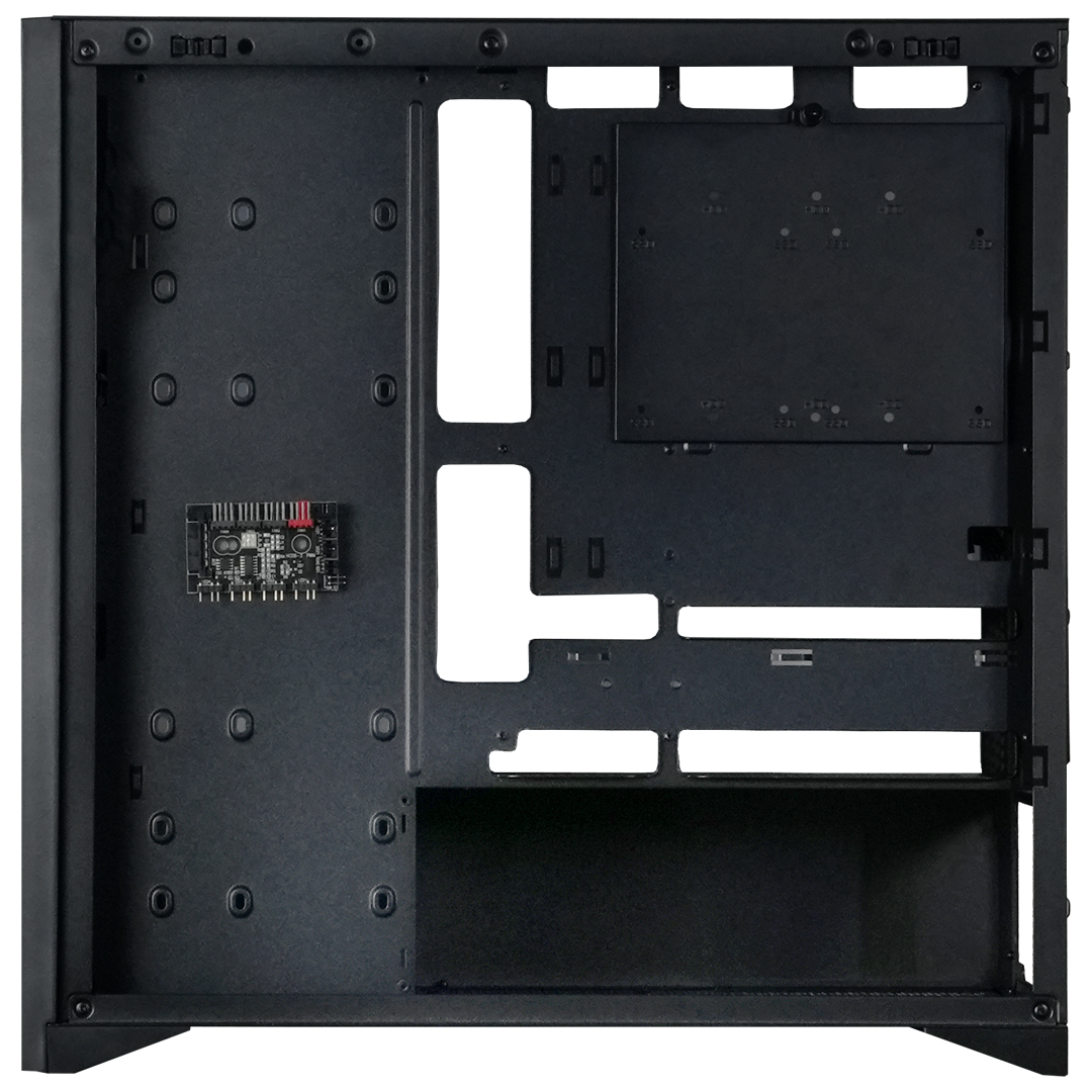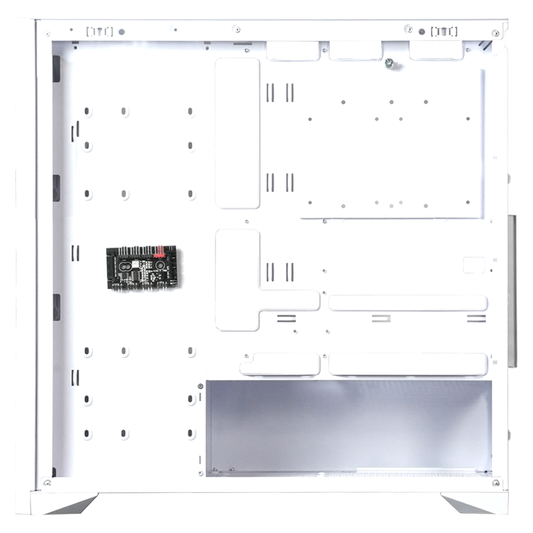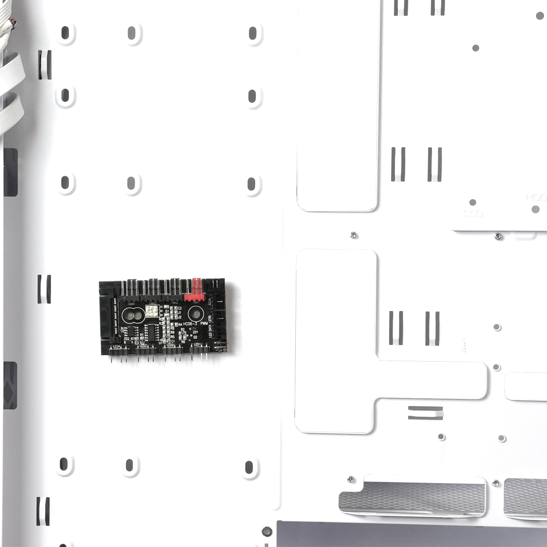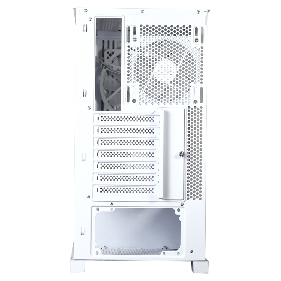 ۳ فن ARGB پیش‌فرض (۲×۱۶۰ میلی‌متری جلو و ۱×۱۲۰ میلی‌متری عقب) جریان هوای قوی و نورپردازی خیره‌کننده‌ای ایجاد می‌کنن. این فن‌ها از طریق مادربورد قابل تنظیم برای سرعت و نورپردازی هستن. هاب فن پیش‌فرض پشت کیس، امکان اتصال فن‌های اضافی رو فراهم می‌کنه و کنترل تهویه رو به سطح حرفه‌ای می‌رسونه.