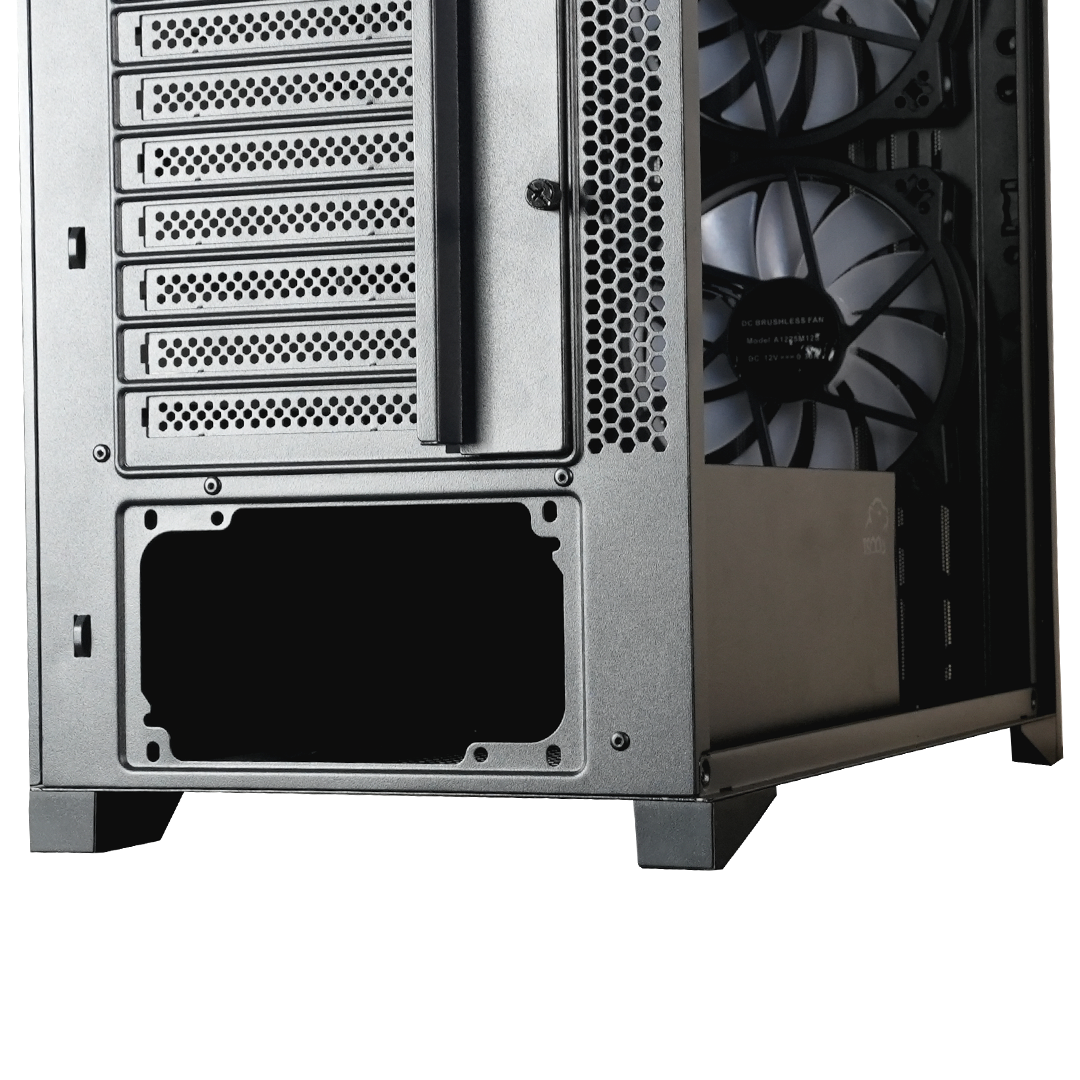 کیس VANIR با 2 جایگاه برای HDD سایز 3.5 اینچ و 2 جایگاه برای SSD سایز 2.5 اینچ، فضای کافی برای ذخیره بازی‌ها و فایل‌های سنگین ارائه می‌دهد. مدیریت کابل 33 میلی‌متری، مثل یه سیستم پنهان‌سازی، کابل‌ها رو مرتب نگه می‌داره تا جریان هوا مختل نشه.