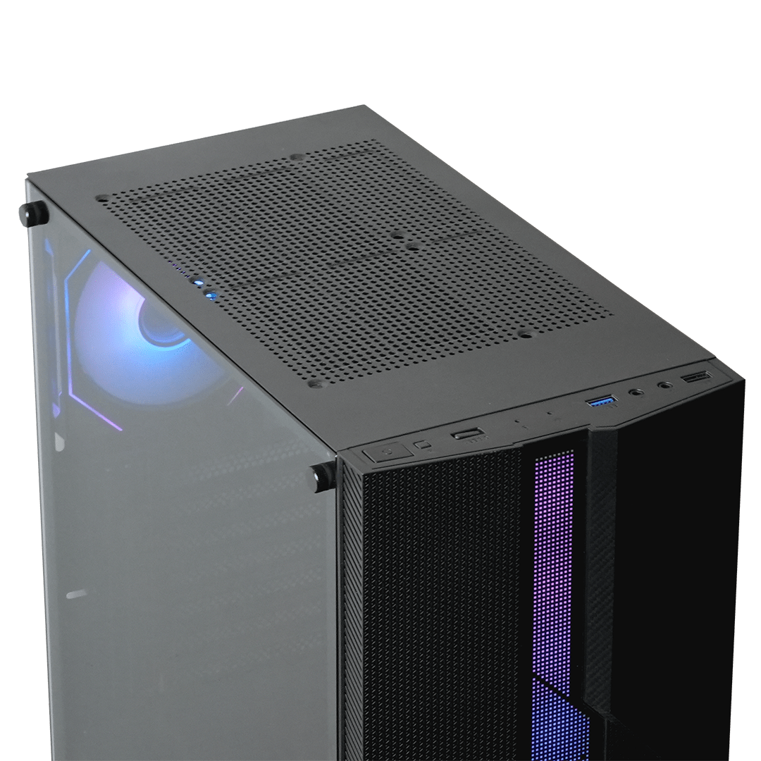 پنل I/O شامل یک پورت USB 3.0، یک پورت USB 2.0، و جک صدا است که اتصال سریع لوازم جانبی را ممکن میکند. دکمه تغییر نور RGB، نوار جلویی و فن ARGB را کنترل میکند، مانند پنلی جادویی که بدون نیاز به نرمافزار، جلوههای نوری کیس را تغییر میدهد. نور RGB قابل تنظیم ، زیبایی کیس را دوچندان میکند.